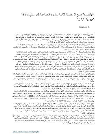 ةسرامم فدهب ، " Music Nation نشين كيزويم" ةكرشل ىقيسوملل ةيناثلا ةيعامجلا ةرادلإا ةصخر حنم نع داصتقلاا ةرازو تنلعأ