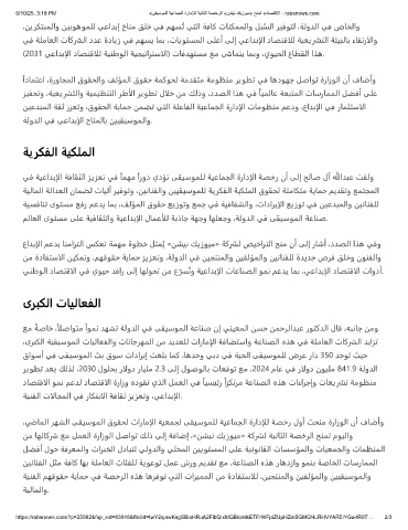 ﻲﻓ ﺔﻴﻋاﺪﺑإلا ﺔﻓﺎﻘﺜﻟا ﺰﻳﺰﻌﺗ ﻲﻓ ًﺎﻤﻬﻣ ًارود يدﺆﺗ ﻰﻘﻴﺳﻮﻤﻠﻟ ﺔﻴﻋﺎﻤﺠﻟا ةرادإلا ﺔﺼﺧر نأ ﻰﻟإ ﺢﻟﺎﺻ لآ ﷲﺪﺒﻋ ﺖﻔﻟو