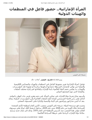 6/10/25, 1:16 PM ﺔﯾﻟودﻟا تﺎﺋﯾﮭﻟاو تﺎﻣظﻧﻣﻟا ﻲﻓ لﻋﺎﻓ روﺿﺣ ..ﺔﯾﺗارﺎﻣﻹا ةأرﻣﻟا