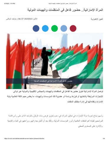 6/10/25, 1:16 PM ﺔﯾﻟودﻟا تﺎﺋﯾﮭﻟاو تﺎﻣظﻧﻣﻟا ﻲﻓ لﻋﺎﻓ روﺿﺣ ..ﺔﯾﺗارﺎﻣﻹا ةأرﻣﻟا