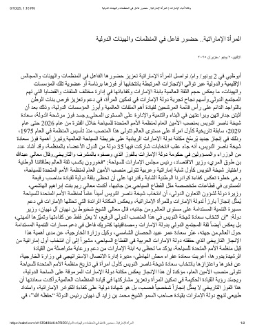 6/10/25, 1:16 PM ﺔﯾﻟودﻟا تﺎﺋﯾﮭﻟاو تﺎﻣظﻧﻣﻟا ﻲﻓ لﻋﺎﻓ روﺿﺣ ..ﺔﯾﺗارﺎﻣﻹا ةأرﻣﻟا | تارﺎﻣﻹا ءﺎﺑﻧأ ﺔﻟﺎﻛو