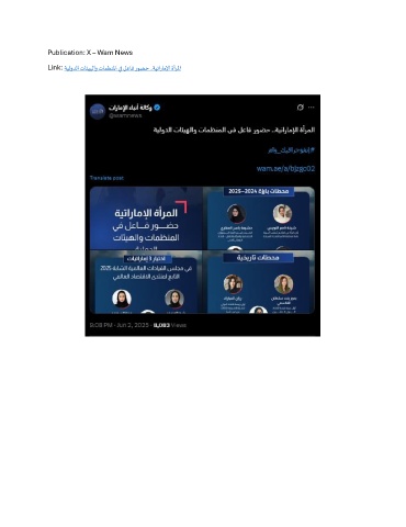 Publication: X – Wam News Link: ةيلودلا تائيهلاو تامظنلما يف لعاف روضح ..ةيتاراملإا ةأرلما