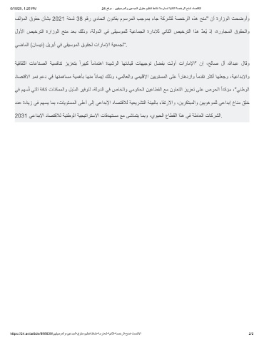 ﺔﯾﻓﺎﻘﺛﻟا تﺎﻋﺎﻧﺻﻟا ﺔﯾﺳﻓﺎﻧﺗ زﯾزﻌﺗﺑ ًارﯾﺑﻛ ً ﺎﻣﺎﻣﺗھا ةدﯾﺷرﻟا ﺎﮭﺗدﺎﯾﻗ تﺎﮭﯾﺟوﺗ لﺿﻔﺑ تﻟوأ تارﺎﻣﻹا" نإ ،ﺢﻟﺎﺻ لآ ﷲدﺑﻋ لﺎﻗو