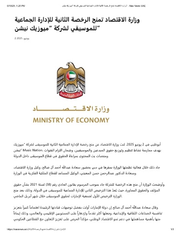 6/10/25, 1:26 PM نﺷﯾﻧ كﯾزوﯾﻣ" ﺔﻛرﺷﻟ ﻲﻘﯾﺳوﻣﻠﻟ ﺔﯾﻋﺎﻣﺟﻟا ةرادﻺﻟ ﺔﯾﻧﺎﺛﻟا ﺔﺻﺧرﻟا ﺢﻧﻣﺗ دﺎﺻﺗﻗﻻا ةرازو" - Nas News UAE