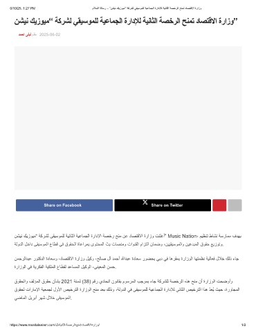6/10/25, 1:27 PM مﻼﺳﻟا ﺔﻟﺎﺳر – ”نﺷﯾﻧ كﯾزوﯾﻣ“ ﺔﻛرﺷﻟ ﻲﻘﯾﺳوﻣﻠﻟ ﺔﯾﻋﺎﻣﺟﻟا ةرادﻺﻟ ﺔﯾﻧﺎﺛﻟا ﺔﺻﺧرﻟا ﺢﻧﻣﺗ دﺎﺻﺗﻗﻻا ةرازو