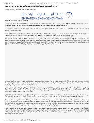6/10/25, 1:27 PM UAE News - نﺷﯾﻧ كﯾزوﯾﻣ" ﺔﻛرﺷﻟ ﻲﻘﯾﺳوﻣﻠﻟ ﺔﯾﻋﺎﻣﺟﻟا ةرادﻺﻟ ﺔﯾﻧﺎﺛﻟا ﺔﺻﺧرﻟا ﺢﻧﻣﺗ دﺎﺻﺗﻗﻻا ةرازو - تارﺎﻣﻹا رﺎﺑﺧأ"