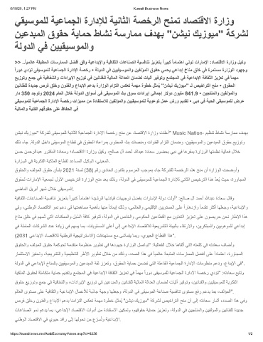 نﺷﯾﻧ كﯾزوﯾﻣ" ﺔﻛرﺷﻟ ﻰﻘﯾﺳوﻣﻠﻟ ﺔﯾﻧﺎﺛﻟا ﺔﯾﻋﺎﻣﺟﻟا ةرادﻹا ﺔﺻﺧر ﺢﻧﻣ نﻋ دﺎﺻﺗﻗﻻا ةرازو تﻧﻠﻋأ" Music Nation، مﯾظﻧﺗ طﺎﺷﻧ ﺔﺳرﺎﻣﻣ فدﮭﺑ