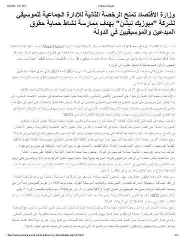 ﺔﺻﺧرﻟا ﺢﻧﻣﻧ موﯾﻟاو ،ﻲﺿﺎﻣﻟا رﮭﺷﻟا ﻰﻘﯾﺳوﻣﻟا قوﻘﺣﻟ تارﺎﻣﻹا ﺔﯾﻌﻣﺟﻟ ﻰﻘﯾﺳوﻣﻠﻟ ﺔﯾﻋﺎﻣﺟﻟا ةرادﻺﻟ ﺔﺻﺧر لوأ ةرازوﻟا تﺣﻧﻣ" :ﮫﺗدﺎﻌﺳ ﻊﺑﺎﺗو