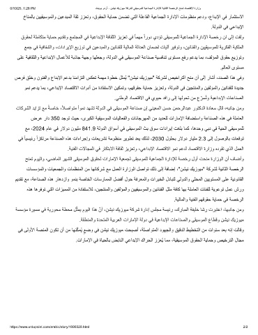 ﻰﻠﻋ ﺔﯾﻓﺎﻘﺛﻟاو ﺔﯾﻋادﺑﻹا لﺎﻣﻋﻸﻟ ﺔﺑذﺎﺟ ﺔﮭﺟو ﺎﮭﻠﻌﺟو ،ﺔﻟودﻟا ﻲﻓ ﻰﻘﯾﺳوﻣﻟا ﺔﻋﺎﻧﺻ ﺔﯾﺳﻓﺎﻧﺗ ىوﺗﺳﻣ ﻊﻓر مﻋدﯾ ﺎﻣﺑ ،فﻟؤﻣﻟا قوﻘﺣ ﻊﯾزوﺗو