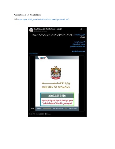 Publication: X – Al Wahda News Link: #نشين كيزويم" ةكرشل يقيسوملل ةيعامجلا ةرادلإل ةيناثلا ةصخرلا حنمت داصتقلاا_ةرازو"..