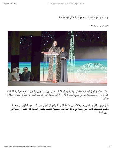 6/10/25, 1:52 PM ﺔﻣادﺗﺳﻻا لﺎطﺑأ» ةزﺋﺎﺟﺑ بﺎﺑﺷﻟا م ّ رﻛﺗ «ﮫﻠﺗﺳﻧ» | ﺔﯾﺗارﺎﻣﻹا ﺞﯾﻠﺧﻟا ﺔﻔﯾﺣﺻ»
