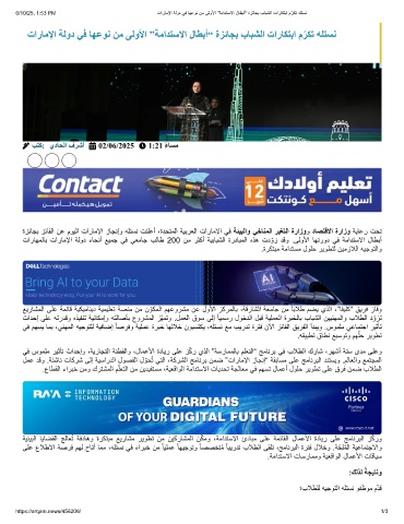 6/10/25, 1:53 PM تارﺎﻣﻹا ﺔﻟود ﻲﻓ ﺎﮭﻋوﻧ نﻣ ﻰﻟوﻷا "ﺔﻣادﺗﺳﻻا لﺎطﺑأ" ةزﺋﺎﺟﺑ بﺎﺑﺷﻟا تارﺎﻛﺗﺑا م ّ رﻛﺗ ﮫﻠﺗﺳﻧ