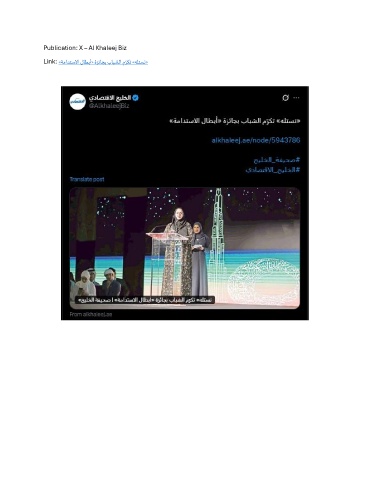 Publication: X – Al Khaleej Biz ّ Link: «ةمادتسلاا لاطبأ« ةزئاجب بابشلا مركت »هلتسن»