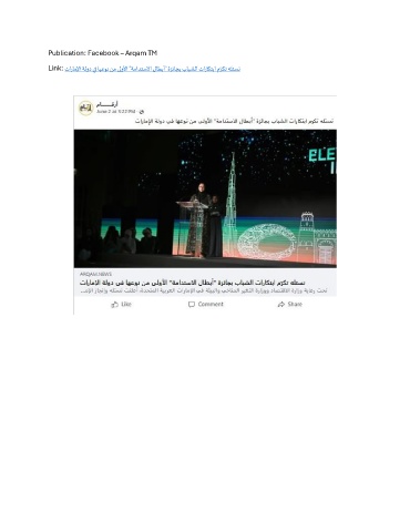 Publication: Facebook – Arqam TM ّ Link: تاراملإا ةلود يف اهعون نم ىلولأا "ةمادتسلاا لاطبأ" ةزئاجب بابشلا تاراكتبا مركت هلتسن