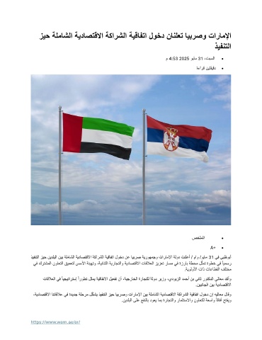 ذيفنتلا زيح نيدلبلا نيب ةلماشلا ةيداصتقلاا ةكارشلا ةيقافتا لوخد نع ايبرص ةيروهمجو تاراملإا ةلود تنلعأ / ماو /ويام 31 يف يبظوبأ