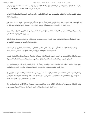 ﻲﻓ رالود نﻮﻴﻠﻣ 121.4 ﻮﺤﻧ ﺖﻠﺠﺳ ﻲﺘﻟاو ،ﺎﻴﺑرصو تارﺎﻣإلا ﺔﻟود ﻦﻴﺑ ﺔﻴﻄﻔﻨﻟا ﺮﻴﻏ ةرﺎﺠﺘﻟا ﺰﻳﺰﻌﺗ ﻰﻟإ ﺔﻴﻗﺎﻔﺗالا فﺪﻬﺗو