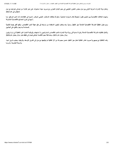 6/10/25, 11:16 AM 7 تارﺎﻣﻻا | لﺎﻣﻋا و دﺎﺻﺗﻗا | ذﯾﻔﻧﺗﻟا زﯾﺣ ﺔﻠﻣﺎﺷﻟا ﺔﯾدﺎﺻﺗﻗﻻا ﺔﻛارﺷﻟا ﺔﯾﻗﺎﻔﺗا لوﺧد نﺎﻧﻠﻌﺗ ﺎﯾﺑرﺻو تارﺎﻣﻹا