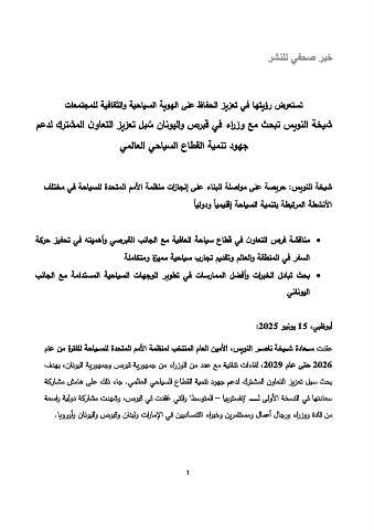 مﺎﻋ نﻤ ةرتﻔﻠﻟ ﺔﺤﺎ�ـــسﻠﻟ ةدحتمﻟا مﻤﻷا ﺔمظنمﻟ بختنمﻟا مﺎﻌﻟا نیﻤﻷا ،س�ونﻟا رـــﺼﺎﻨ ﺔخ�ـــﺸ ةدﺎﻌـــﺴ تدﻘﻋ