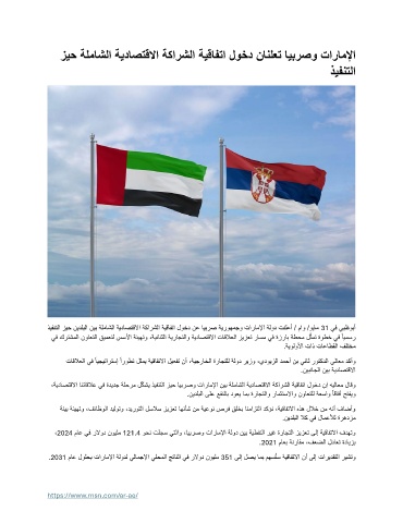 ذيفنتلا زيح نيدلبلا نيب ةلماشلا ةيداصتقلاا ةكارشلا ةيقافتا لوخد نع ايبرص ةيروهمجو تاراملإا ةلود تنلعأ / ماو /ويام 31 يف يبظوبأ