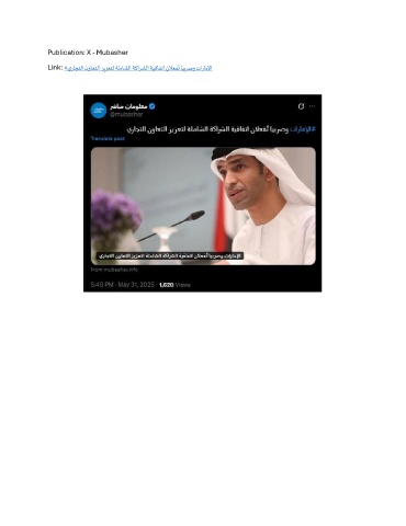 Publication: X - Mubasher ُ Link: # يراجتلا نواعتلا زيزعتل ةلماشلا ةكارشلا ةيقافتا نلاعفت ايبرصو تاراملإا