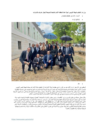 تاراملإل فرشم زاجنإ ةحايسلل ةدحتملا مملأا ةمظنمل ًاماع ًانيمأ سيونلا ةخيش باختنا :ءارزو