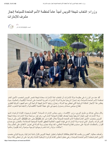 6/10/25, 10:41 AM تارﺎﻣﻺﻟ فرﺷﻣ زﺎﺟﻧإ ﺔﺣﺎﯾﺳﻠﻟ ةدﺣﺗﻣﻟا مﻣﻷا ﺔﻣظﻧﻣﻟ ً ﺎﻣﺎﻋ ً ﺎﻧﯾﻣأ سﯾوﻧﻟا ﺔﺧﯾﺷ بﺎﺧﺗﻧا :ءارزو