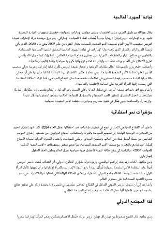 ةأﺮﻣا لوﺄﻛ ﺎﻬﻨﻴﻴﻌﺗ نأو ﺔﻴﺗارﺎﻣﻹا ةأﺮﻤﻠﻟو تارﺎﻣﻹا ﺔﻟوﺪﻟ ًازرﺎﺑ ًازﺎﺠﻧإ ﻞّﺜﻤﻳ ﺔﺣﺎﻴﺴﻠﻟ ةﺪﺤﺘﻤﻟا ﻢﻣﻷا ﺔﻤﻈﻨﻤﻟ ًﺎﻣﺎﻋ ًﺎﻨﻴﻣأ