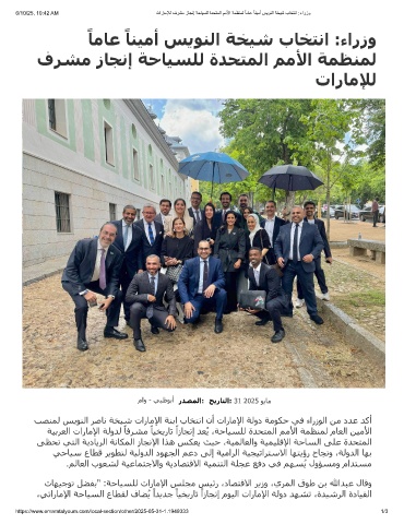 6/10/25, 10:42 AM تارﺎﻣﻺﻟ فرﺷﻣ زﺎﺟﻧإ ﺔﺣﺎﯾﺳﻠﻟ ةدﺣﺗﻣﻟا مﻣﻷا ﺔﻣظﻧﻣﻟ ً ﺎﻣﺎﻋ ً ﺎﻧﯾﻣأ سﯾوﻧﻟا ﺔﺧﯾﺷ بﺎﺧﺗﻧا :ءارزو
