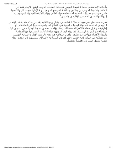 6/10/25, 10:42 AM تارﺎﻣﻺﻟ فرﺷﻣ زﺎﺟﻧإ ﺔﺣﺎﯾﺳﻠﻟ ةدﺣﺗﻣﻟا مﻣﻷا ﺔﻣظﻧﻣﻟ ً ﺎﻣﺎﻋ ً ﺎﻧﯾﻣأ سﯾوﻧﻟا ﺔﺧﯾﺷ بﺎﺧﺗﻧا :ءارزو