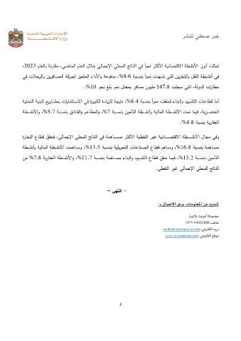 ، 2023 مﺎﻌ ﻟﺎﺑ ﺔﻧرﺎﻘﻣ ،ﻲﺿﺎﻣﻟا مﺎﻌﻟا ﻝﻼﺧ ﻲﻟﺎﻣﺟﻹا ﻲﻠﺣﻣﻟا ﺞﺗﺎﻧﻟا ﻲﻓ ً اوﻣﻧ رﺛﻛﻷا ﺔﻳدﺎﺻﺗﻗﻻا ﺔطﺷﻧﻷا زرﺑأ تﻠﺛﻣﺗ