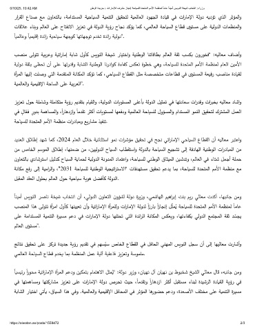 6/10/25, 10:42 AM نطوﻟا ةدﯾرﺟ › تارﺎﻣﻺﻟ فرﺷﻣ زﺎﺟﻧإ ﺔﺣﺎﯾﺳﻠﻟ ةدﺣﺗﻣﻟا مﻣﻷا ﺔﻣظﻧﻣﻟ ً ﺎﻣﺎﻋ ً ﺎﻧﯾﻣأ سﯾوﻧﻟا ﺔﺧﯾﺷ بﺎﺧﺗﻧا :ءارزو