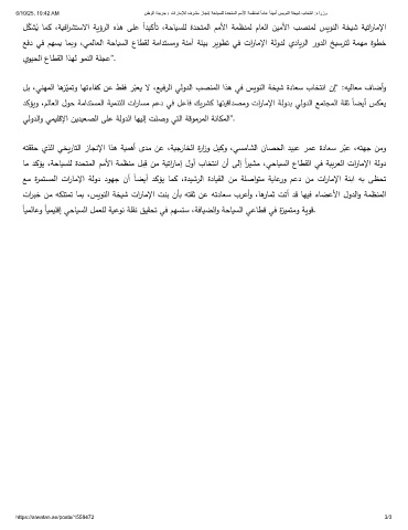 6/10/25, 10:42 AM نطوﻟا ةدﯾرﺟ › تارﺎﻣﻺﻟ فرﺷﻣ زﺎﺟﻧإ ﺔﺣﺎﯾﺳﻠﻟ ةدﺣﺗﻣﻟا مﻣﻷا ﺔﻣظﻧﻣﻟ ً ﺎﻣﺎﻋ ً ﺎﻧﯾﻣأ سﯾوﻧﻟا ﺔﺧﯾﺷ بﺎﺧﺗﻧا :ءارزو