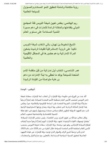6/10/25, 10:42 AM ﺔﯾﻣﻟﺎﻌﻟا ﺔﺣﺎﯾﺳﻟا مﻋد ﻲﻓ ﺎﮭﺗﯾؤر حﺎﺟﻧ دّﺳﺟُﯾو تارﺎﻣﻹا ﺔﻟودﻟ ً ﺎﻓرﺷﻣ ً ﺎﯾﺧﯾرﺎﺗ ًازﺎﺟﻧإ دﻌُﯾ ﺔﺣﺎﯾﺳﻠﻟ ةدﺣﺗﻣﻟا مﻣﻷا ﺔﻣظﻧﻣﻟ ً ﺎﻣﺎﻋ ً ﺎﻧﯾﻣأ سﯾوﻧﻟا ﺔﺧﯾﺷ تارﺎﻣﻹا ﺔﻧﺑا بﺎﺧﺗﻧا :ءارزو