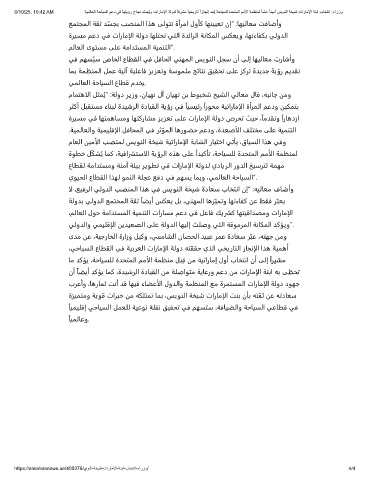 6/10/25, 10:42 AM ﺔﯾﻣﻟﺎﻌﻟا ﺔﺣﺎﯾﺳﻟا مﻋد ﻲﻓ ﺎﮭﺗﯾؤر حﺎﺟﻧ دّﺳﺟُﯾو تارﺎﻣﻹا ﺔﻟودﻟ ً ﺎﻓرﺷﻣ ً ﺎﯾﺧﯾرﺎﺗ ًازﺎﺟﻧإ دﻌُﯾ ﺔﺣﺎﯾﺳﻠﻟ ةدﺣﺗﻣﻟا مﻣﻷا ﺔﻣظﻧﻣﻟ ً ﺎﻣﺎﻋ ً ﺎﻧﯾﻣأ سﯾوﻧﻟا ﺔﺧﯾﺷ تارﺎﻣﻹا ﺔﻧﺑا بﺎﺧﺗﻧا :ءارزو