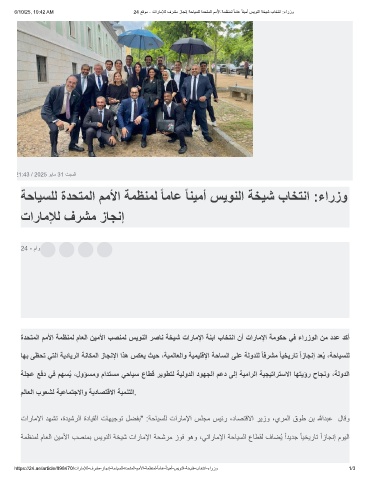 6/10/25, 10:42 AM 24 ﻊﻗوﻣ - تارﺎﻣﻺﻟ فرﺷﻣ زﺎﺟﻧإ ﺔﺣﺎﯾﺳﻠﻟ ةدﺣﺗﻣﻟا مﻣﻷا ﺔﻣظﻧﻣﻟ ً ﺎﻣﺎﻋ ً ﺎﻧﯾﻣأ سﯾوﻧﻟا ﺔﺧﯾﺷ بﺎﺧﺗﻧا :ءارزو