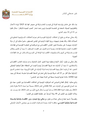 ﻝﺎـﻣﻋﻷا ةدﺎـﻳرﻟ " 2025 كـﺗ ﺎـﻔﻳﻓ" ضرﻌﻣ ﻲﻓ ﺔـﻛرﺎــــــــــــــﺷﻣﻠﻟ ﺎــــــــــــــﺳﻧرﻓ ﻰﻟإ ﺔـﻟودـﻟا دـﻓو ةرﺎـﻳز شﻣﺎـﻫ ﻰﻠﻋ كـﻟذ ءﺎـﺟ