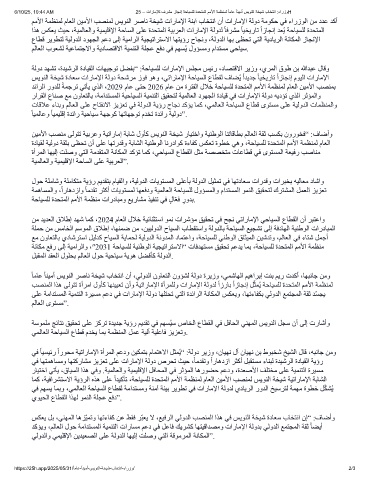 ﺲﯾﻮﻨﻟا ﺔﺨﯿﺷ ةدﺎﻌﺳ تارﺎﻣﻹا ﺔﻟود ﺔﺤﺷﺮﻣ زﻮﻓ ﻮھو ،ﻲﺗارﺎﻣﻹا ﺔﺣﺎﯿﺴﻟا عﺎﻄﻘﻟ فﺎﻀُﯾ ًاﺪﯾﺪﺟ ً ﺎﯿﺨﯾرﺎﺗ ًازﺎﺠﻧإ مﻮﯿﻟا تارﺎﻣﻹا