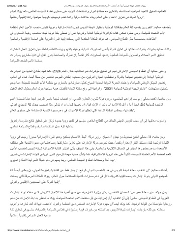 مﻟﺎﻌﻟا ىوﺗﺳﻣ ﻰﻠﻋ ﺔﻣادﺗﺳﻣﻟا ﺔﯾﻣﻧﺗﻟا ةرﯾﺳﻣ مﻋد ﻲﻓ تارﺎﻣﻹا ﺔﻟود ﺎﮭﻠﺗﺣﺗ ﻲﺗﻟا ةدﺋارﻟا ﺔﻧﺎﻛﻣﻟا سﻛﻌﯾو ،ﺎﮭﺗءﺎﻔﻛﺑ”.
