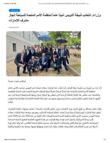 6/10/25, 10:45 AM ﺔﯾروﺳ توﺻ | تارﺎﻣﻺﻟ فرﺷﻣ زﺎﺟﻧإ ﺔﺣﺎﯾﺳﻠﻟ ةدﺣﺗﻣﻟا مﻣﻷا ﺔﻣظﻧﻣﻟ ً ﺎﻣﺎﻋ ً ﺎﻧﯾﻣأ سﯾوﻧﻟا ﺔﺧﯾﺷ بﺎﺧﺗﻧا :ءارزو