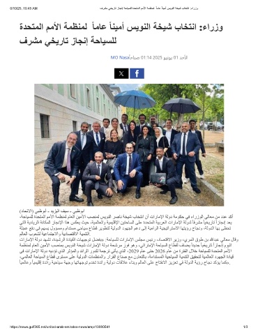 ،ﺔﺣﺎﯿﺴﻠﻟ ةﺪﺤﺘﻤﻟا ﻢﻣﻷا ﺔﻤﻈﻨﻤﻟ مﺎﻌﻟا ﻦﯿﻣﻷا ﺐﺼﻨﻤﻟ ﺲﯾﻮﻨﻟا ﺮﺻﺎﻧ ﺔﺨﯿﺷ بﺎﺨﺘﻧا نأ تارﺎﻣﻹا ﺔﻟود ﺔﻣﻮﻜﺣ ﻲﻓ ءارزﻮﻟا ﻲﻟﺎﻌﻣ ﻦﻣ دﺪﻋ ﺪﻛأ