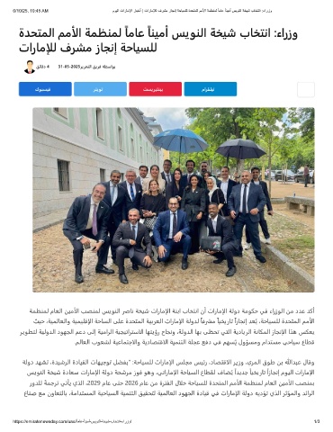 6/10/25, 10:45 AM موﯾﻟا تارﺎﻣﻹا رﺎﺑﺧأ | تارﺎﻣﻺﻟ فرﺷﻣ زﺎﺟﻧإ ﺔﺣﺎﯾﺳﻠﻟ ةدﺣﺗﻣﻟا مﻣﻷا ﺔﻣظﻧﻣﻟ ً ﺎﻣﺎﻋ ً ﺎﻧﯾﻣأ سﯾوﻧﻟا ﺔﺧﯾﺷ بﺎﺧﺗﻧا :ءارزو