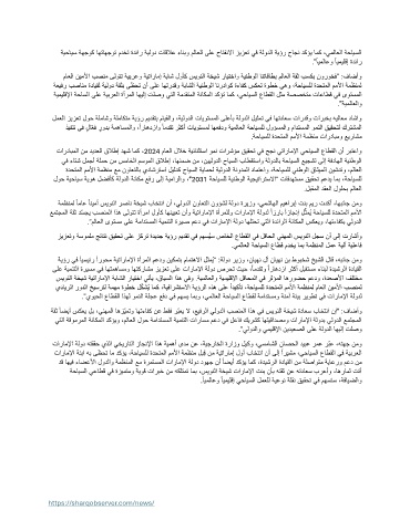 ىلع ةيمنتلا ةريسم يف اهتمهاسمو اهتكراشم زيزعت ىلع تاراملإا ةلود صرحت ثيح ، امدقتو اراهدزا رثكأ لبقتسم ءانبل ةديشرلا ةدايقلا