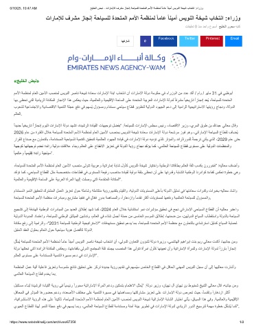 6/10/25, 10:47 AM ﺞﯾﻠﺧﻟا ضﺑﻧ - تارﺎﻣﻺﻟ فرﺷﻣ زﺎﺟﻧإ ﺔﺣﺎﯾﺳﻠﻟ ةدﺣﺗﻣﻟا مﻣﻷا ﺔﻣظﻧﻣﻟ ً ﺎﻣﺎﻋ ً ﺎﻧﯾﻣأ سﯾوﻧﻟا ﺔﺧﯾﺷ بﺎﺧﺗﻧا :ءارزو