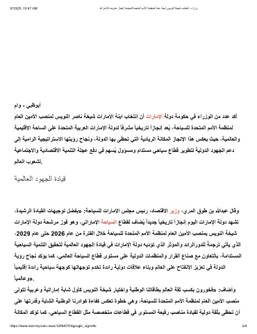 6/10/25, 10:47 AM تارﺎﻣﻺﻟ فرﺷﻣ زﺎﺟﻧإ ﺔﺣﺎﯾﺳﻠﻟ ةدﺣﺗﻣﻟا مﻣﻷا ﺔﻣظﻧﻣﻟ ً ﺎﻣﺎﻋ ً ﺎﻧﯾﻣأ سﯾوﻧﻟا ﺔﺧﯾﺷ بﺎﺧﺗﻧا :ءارزو