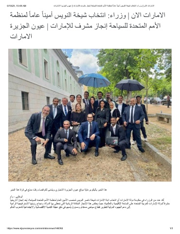 ً ﺎﯿﺨﯾرﺎﺗ ًازﺎﺠﻧإ ﺪﻌُﯾ ،ﺔﺣﺎﯿﺴﻠﻟ ةﺪﺤﺘﻤﻟا ﻢﻣﻷا ﺔﻤﻈﻨﻤﻟ مﺎﻌﻟا ﻦﯿﻣﻷا ﺐﺼﻨﻤﻟ ﺲﯾﻮﻨﻟا ﺮﺻﺎﻧ ﺔﺨﯿﺷ تارﺎﻣﻹا ﺔﻨﺑا بﺎﺨﺘﻧا نأ تارﺎﻣﻹا ﺔﻟود ﺔﻣﻮﻜﺣ ﻲﻓ ءارزﻮﻟا ﻦﻣ دﺪﻋ ﺪﻛأ