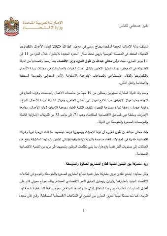 ﺎﻳﺟوﻟوﻧﻛﺗﻟاو ﻝﺎﻣﻋﻷا ةدﺎﻳرﻟ " 2025 كﺗ ﺎﻔﻳﻓ" ضرﻌﻣ ﻲﻓ ﻲﻣﺳر حﺎﻧﺟﺑ ةدﺣﺗﻣﻟا ﺔﻳﺑرﻌﻟا تارﺎﻣﻹا ﺔﻟود ت ﻛرﺎﺷ