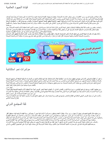 تارﺎﻣﻹا ﺔﻟوﺪﺑ ﻲﻟوﺪﻟا ﻊﻤﺘﺠﻤﻟا ﺔﻘﺛ ً ﺎﻀﯾأ ﺲﻜﻌﯾ ﻞﺑ ،ﻲﻨﮭﻤﻟا ﺎھﺰّﯿﻤﺗو ﺎﮭﺗءﺎﻔﻛ ﻦﻋ ﻂﻘﻓ ﺮّﺒﻌﯾ ﻻ ،ﻊﯿﻓﺮﻟا ﻲﻟوﺪﻟا ﺐﺼﻨﻤﻟا اﺬھ ﻲﻓ ﺲﯾﻮﻨﻟا ﺔﺨﯿﺷ بﺎﺨﺘﻧا نإ» :فﺎﺿأو