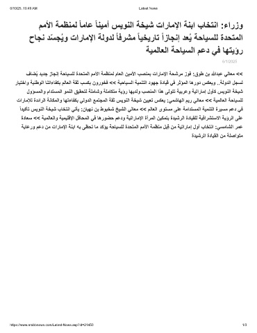 فﺎﺿُﯾ دﯾدﺟ زﺎﺟﻧإ ﺔﺣﺎﯾﺳﻠﻟ ةدﺣﺗﻣﻟا مﻣﻷا ﺔﻣظﻧﻣﻟ مﺎﻌﻟا نﯾﻣﻷا بﺻﻧﻣﺑ تارﺎﻣﻹا ﺔﺣﺷرﻣ زوﻓ :قوط نﺑ ﷲدﺑﻋ ﻲﻟﺎﻌﻣ <<