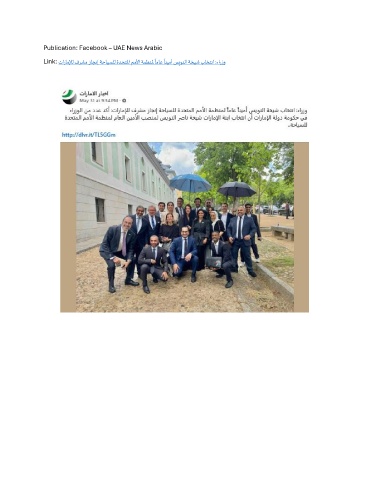 Publication: Facebook – UAE News Arabic ً ً Link: تاراملإل فرشم زاجنإ ةحايسلل ةدحتلما مملأا ةمظنلم اماع انيمأ سيونلا ةخيش باختنا :ءارزو