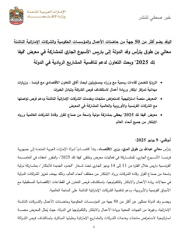 ةيروهمج ىلإ ةدحتملا ةيبرعلا تار ملإا ةلود ل ً يد ااااااصتقا ً ا دفو ، داااااصتقلاا ريزو ،ي رملا قوط نب اللهدبع يلاعم سأرتي